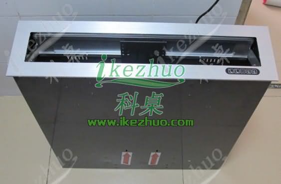 2、在液晶屏的上升過程中,裝飾面板自動打開,液晶屏直立伸出桌面并自動接通電源,自動仰成一定角度;